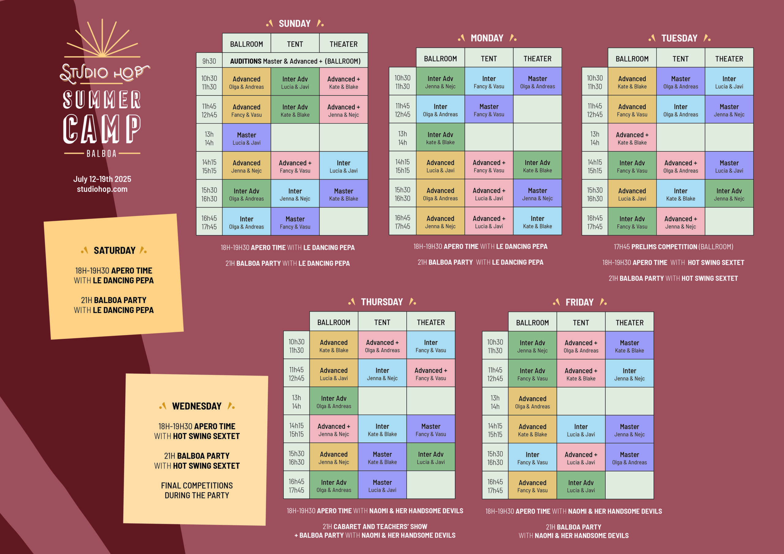 Il n’y a pas de niveau débutant complet : pour participer au stage, vous devez connaitre tous les basiques , et danser socialement depuis plusieurs mois.